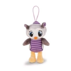 Schlafmützen Eule Olafina begleitet dich als Schlüsselanhänger. Befestige sie mit der elastischen Gummischlaufe an deiner Tasche, schon kommt sie überall hin mit. Die kleine Plüsch Eule von NICI trägt einen gestreiften Schlafanzug und eine Zipfelmütze in derselben Farbe. Das Besondere: Die Mütze hat eine breite Krempe, die über die Ohren und Augen gezogen werden kann. Auf der Krempe sind geschlossene Augenlider aufgestickt, mit denen es so wirkt, als würde Olafina ein Nickerchen halten.