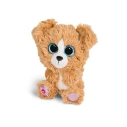 Glubschis Hund Lollidog ist in einem hellen Braunton gehalten. Das lange Plüschfell, rosa Glitzerfüße und seine türkisfarben umrandeten Glitzeraugen sind ein echter Hingucker. Gefertigt aus einem hochwertigen NICI Plüsch und mit dem NICI Stern am Fuß, ist der GLUBSCHIS Kuschel-Hund das perfekte Geschenk.