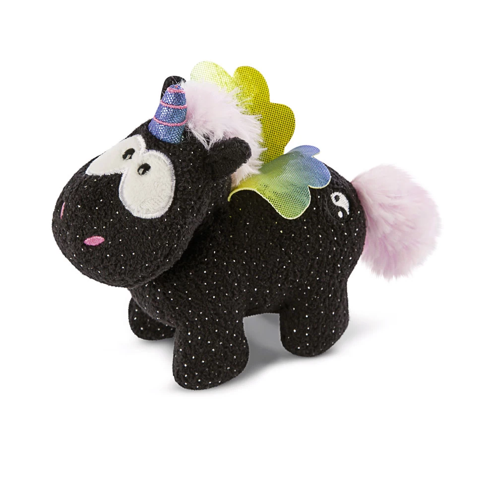 Das schwarze Kuscheltier Einhorn Yin ist ein super Kuschelfreund mit rosaner Mähne und regenbogenfarbenen Flügeln. Das Yin-Yang Zeichen prangt auf seinem Hinterteil und verleiht ihm einen tollen unverwechselbaren Look! Als Highlight glitzert sein schwarzes Fell auch noch!