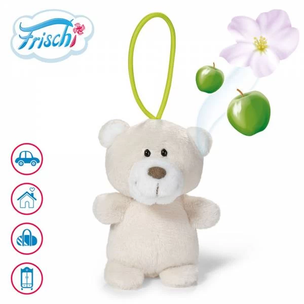 Der kleine Frischi Bär hat ein kleines Durftsäckchen im Bauch, das ihn nach Apfel duften lässt