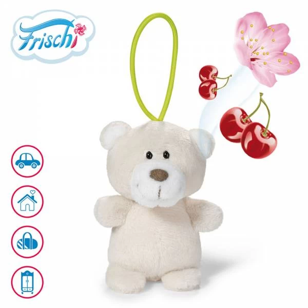 Der kleine Frischi Bär hat ein kleines Durftsäckchen im Bauch, das ihn nach Kirsch duften lässt