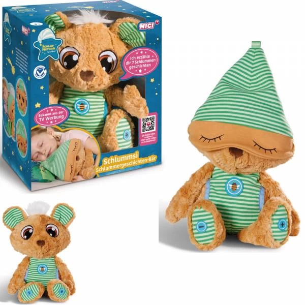 Der kuschelweiche Schlummergeschichten-Bär erzählt 7 verschiedenen Geschichten. Jede der Geschichten ist 5 bis 8 Minuten lang.