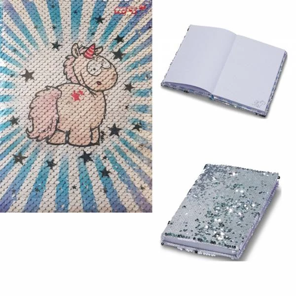 21cm große, 14,8cm breit und passt in jede Tasche. Das glitzernde, mit Pailletten besetze Notizbuch bieten Dir viel Platz für Deine Notizen.